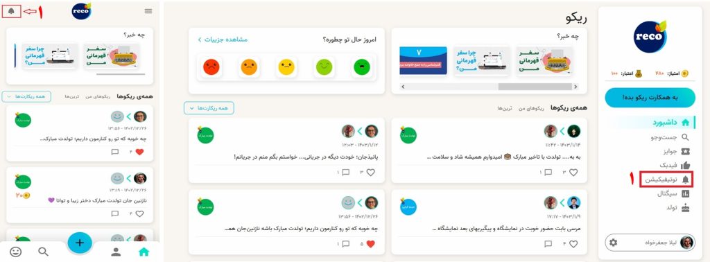 ریکو از طریق ابزار نوتیفیکیشن شما را در جریان فعالیتهایی که کاربران نسبت به شما انجام میدهند قرار میدهد. همچنین برخی فعالیتهای همکارانتان در ریکو از طریق پیامک یا ارسال اعلان (پوش نوتیف) به شما اطلاعرسانی میشود. در ادامه روش دسترسی و استفاده از ابزار نوتیفیکیشن آموزش داده شده و نیز در انتها توضیح دادهایم که چگونه به ریکو برای ارسال اعلانها در موبایل و رایانه دسترسی دهید.