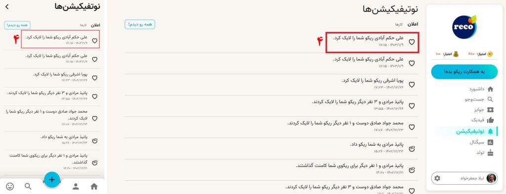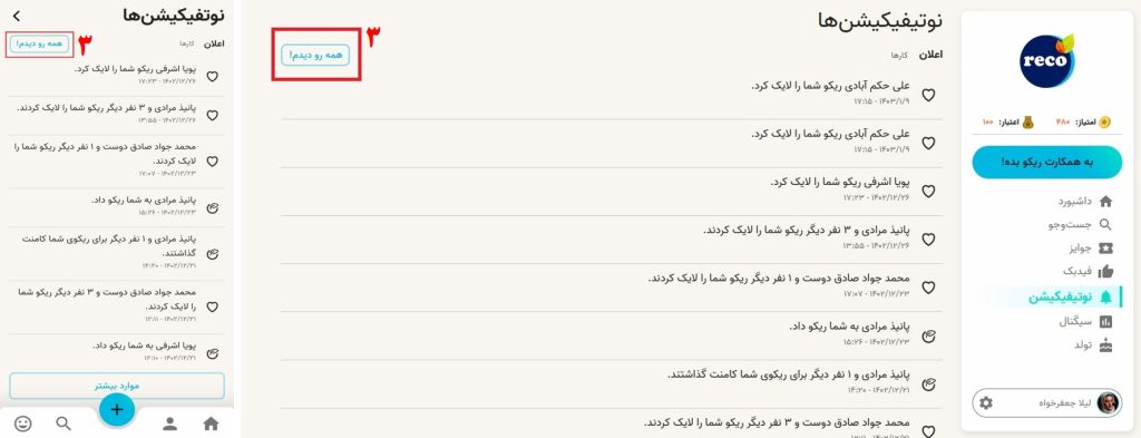 ۳- با کلیک بر روی گزینه “همه رو دیدم!” ، ریکو را از دیدن نوتیفیکیشنها آگاه کنید.